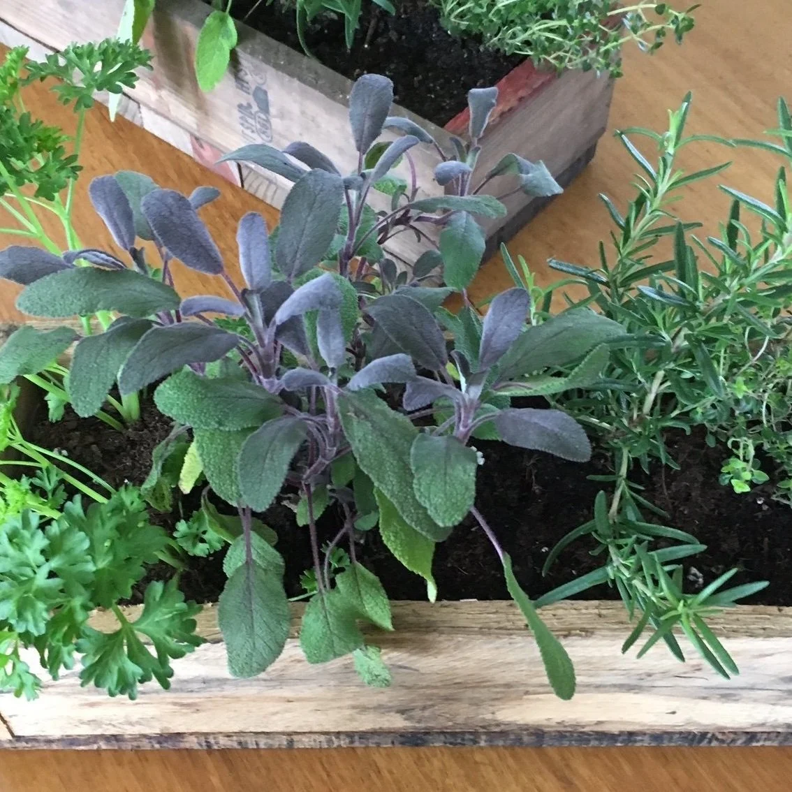 Ready for the windowsill, center of the table, or deck rail, this miniature garden features a selection of herbs in a locally made long Barnwood Box. You’ll have yummy herbs ready for cocktails and fresh meals. Pick-up at Hearthfire Books.